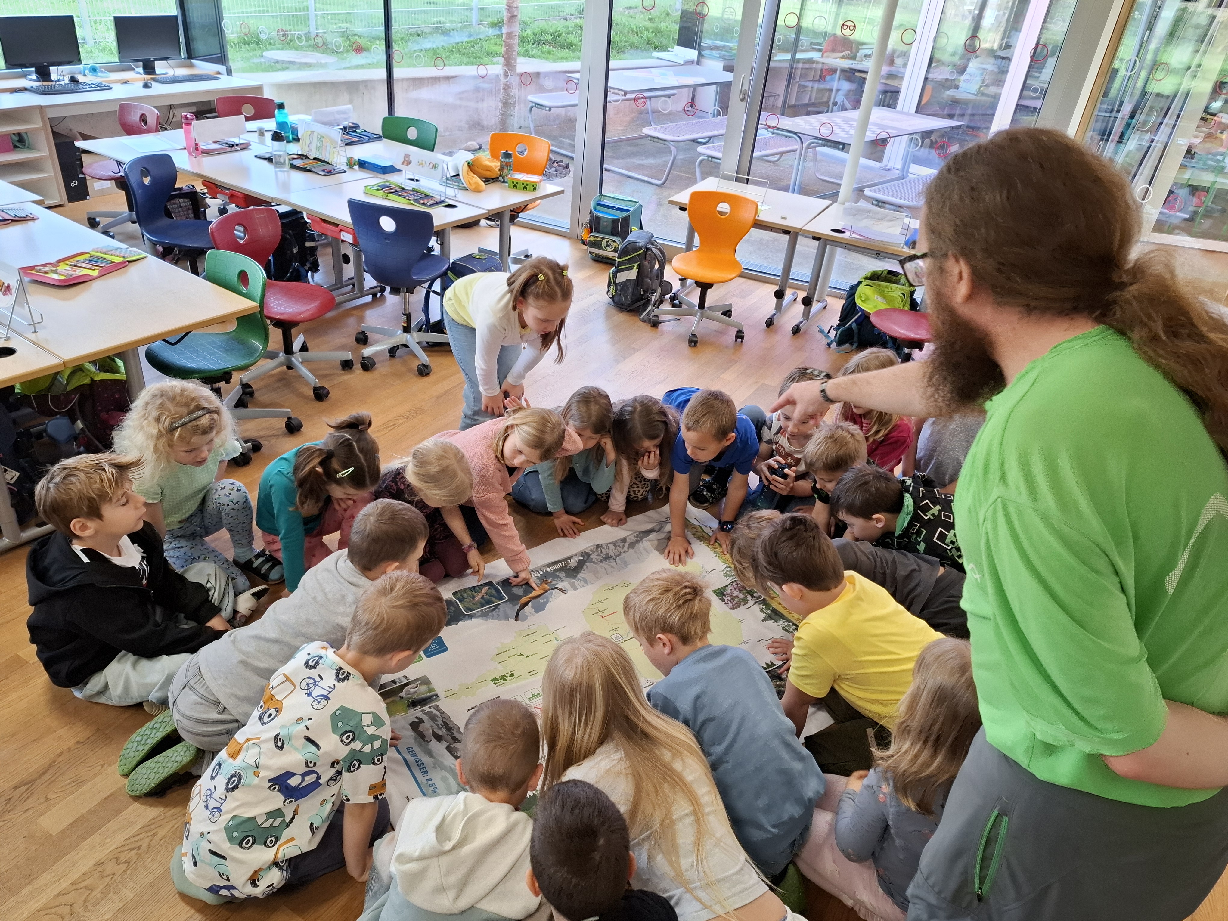 Ein Ranger brachte den Nationalpark direkt ins Klassenzimmer und vermittelte den Kindern auf spielerische Weise, was „Wildnis“ bedeutet und warum sie geschützt werden muss. Die Schülerinnen und Schüler lernten verschiedene Lebensräume wie Wald, Wasser und Fels sowie deren Tiere und Pflanzen kennen.